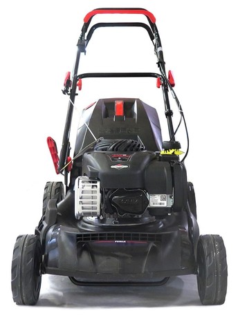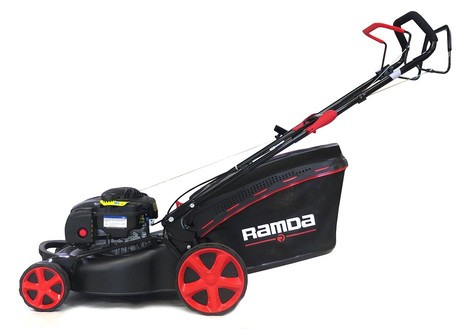 RAMDA G46SHL-E vrtna kosilica s pogonom, košarom i sistemom 4u1 - motor: Briggs&Stratton Serija 450E OHV, 125ccm - širina košnje: 46cm - kućište: metalno - košara: 65L - podešavanje kotača: centralno 1x ručka, 6 razina, od 25-75mm - kotači s ležajima - kotači sprijeda 180mm, iza 260mm - vrsta košnje: 4u1 (košara, malčer, stražnje izbacivanje, bočno izbacivanje) - samohodni, pogon na stražnje kotače (General Transmission pogon) - opcija: zamjenski nož (TX G3510000000) - težina: 30kg - jamstvo: 24 mjeseca opširnije